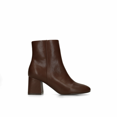 Bruine enkellaarsjes met blokhak van Sacha. De enkellaarsjes hebben een hak hoogte van 7 cm en sluiten middels een rits aan de binnenzijde. Hiernaast hebben de laarsjes een puntige neus.