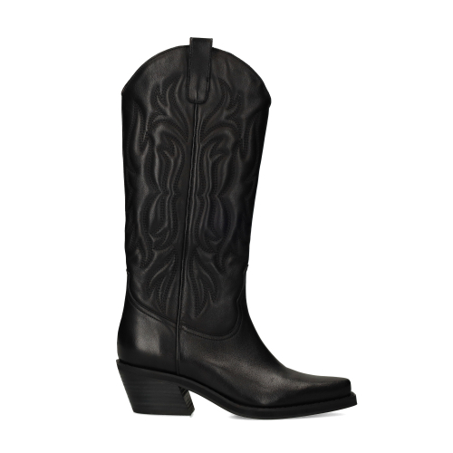 Let op: dit artikel is een pre-order. De verwachte levertijd is half oktober. Deze zwarte leren cowboylaarzen met stiksels van Sacha hebben een hakhoogte van 5 cm. De schachthoogte is 30 cm en de schachtomtrek 38 cm, gemeten bij een maat 37. De buiten- en binnenzijde zijn gemaakt van leer.
